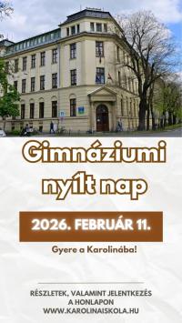 2025/2026 Nyílt nap a gimnáziumban 2026. február 11-én lesz a következő gimnáziumi nyílt nap. Részletek ...