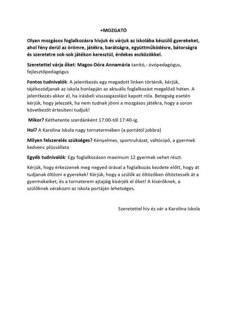 A +mozgató és SuliStart programokra regisztráció szükséges, ami mindig a program előtti héten, szerdán indul.