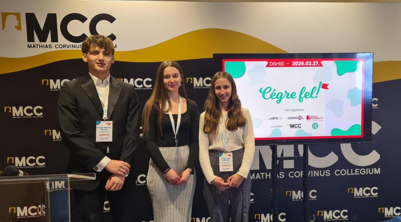 A döntőben egy újabb, életszerű üzleti problémát kaptak, amelynek megoldását részletesen ki kellett dolgozniuk, majd szakmai zsűri előtt prezentálniuk. Csapatunk a közgazdasági iskolák mezőnyében is kiválóan helytállt, bizonyítva, hogy gazdasági szakirányú képzés nélkül is képesek magas színvonalú szakmai munkát végezni, és megoldásukat magabiztosan, meggyőzően bemutatni.