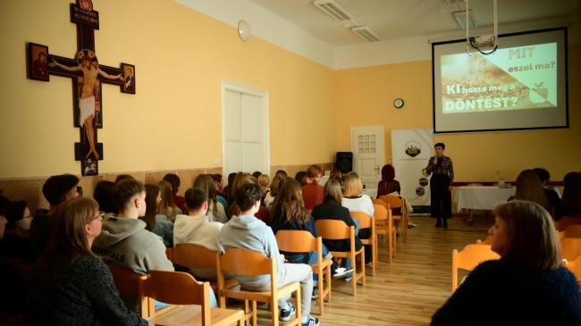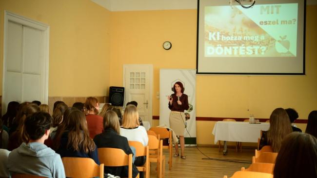 A főelőadó, a NAK (és a MAGOSZ) alelnök asszonya, Süle Katalin a végzőseinket, a jövő fogyasztóit szólította meg a "Mit eszel ma? Ki hozza meg a döntést?" előadásával az "Itthonról otthonra" programsorozat keretében.