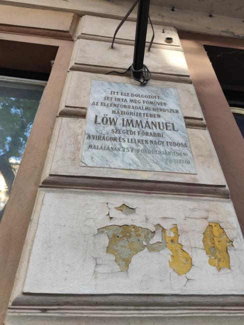 Nagyné Frauhammer Krisztina, a Holtzer Alapítvány kuratóriumának elnöke az egykori gettó területén, Lőw Immánuel, a tudós szegedi főrabbi házától indulva tette élővé az emléktábla, a botlatókövek, a zsinagóga, az utcák szomorú tanúságát a vészkorszakról, a szegedi és környékbeli zsidó közösségek történetéről.