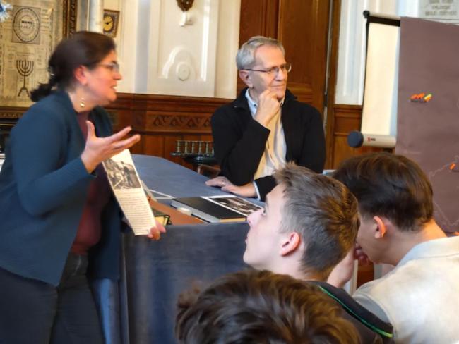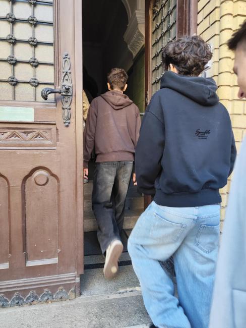 A séta után a Szegedi Zsidó Hitközség székházának gyönyörű díszterében folytattuk az emlékezést. A tárgyak, fényképek, a térkép és az áldozatok sorsáról szóló mély beszámolók mindannyiunkat megérintettek. Lehetőséget kaptunk arra is, hogy találkozzunk Buk Istvánnal, a Szegedi Zsidó Hitközség elnökével. Szülei történetébe engedett be bennünket, akik különböző területeken élték túl a szörnyűségeket, a semmiből kezdtek újra, és életük végéig hordozták emlékeit.