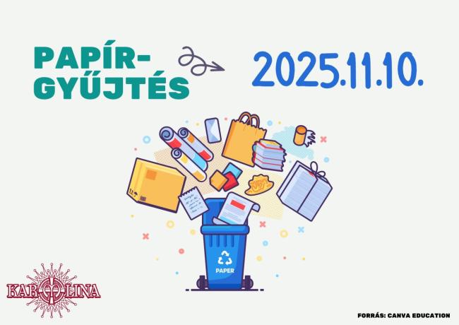 Az őszi papírgyűjtés a MOHU-n keresztül a Szegedi Hulladékgazdálkodási Nonprofit Kft. átvételével 2025.11.10-én, pénteken kerül megrendezésre 7.00-16.45-ig.