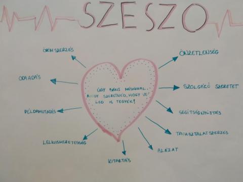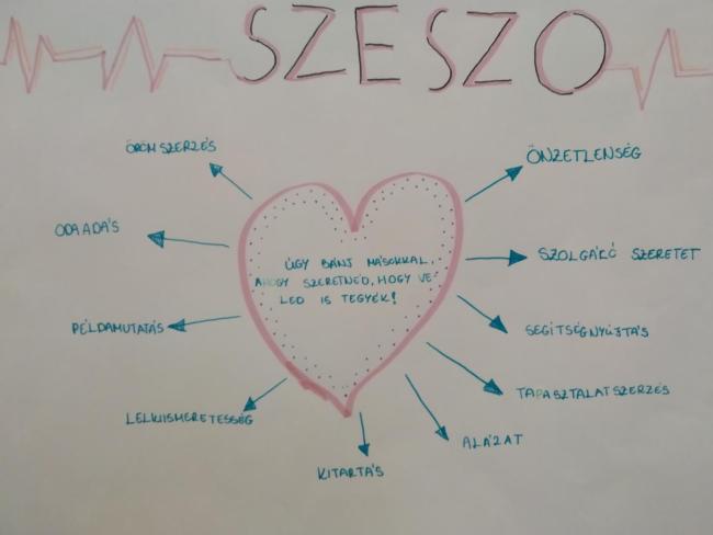 A nap lelki ráhangolódással kezdődött el, amely ötletet is adott egyes csoportok diákjainak a SZESZO-s plakát elkészítéséhez. Tanítványaink a lényeget megragadva tették közzé gondolataikat a plakát ismertetésénél.
