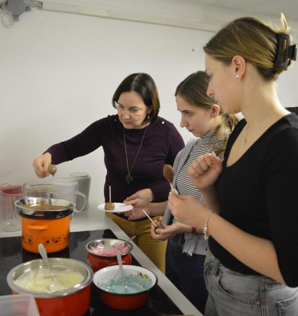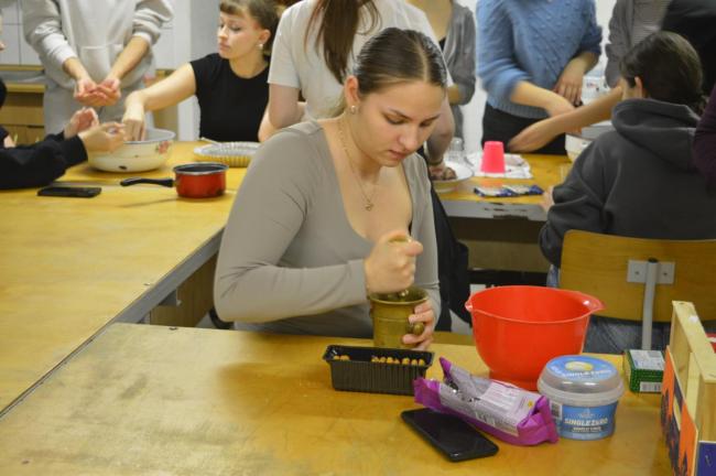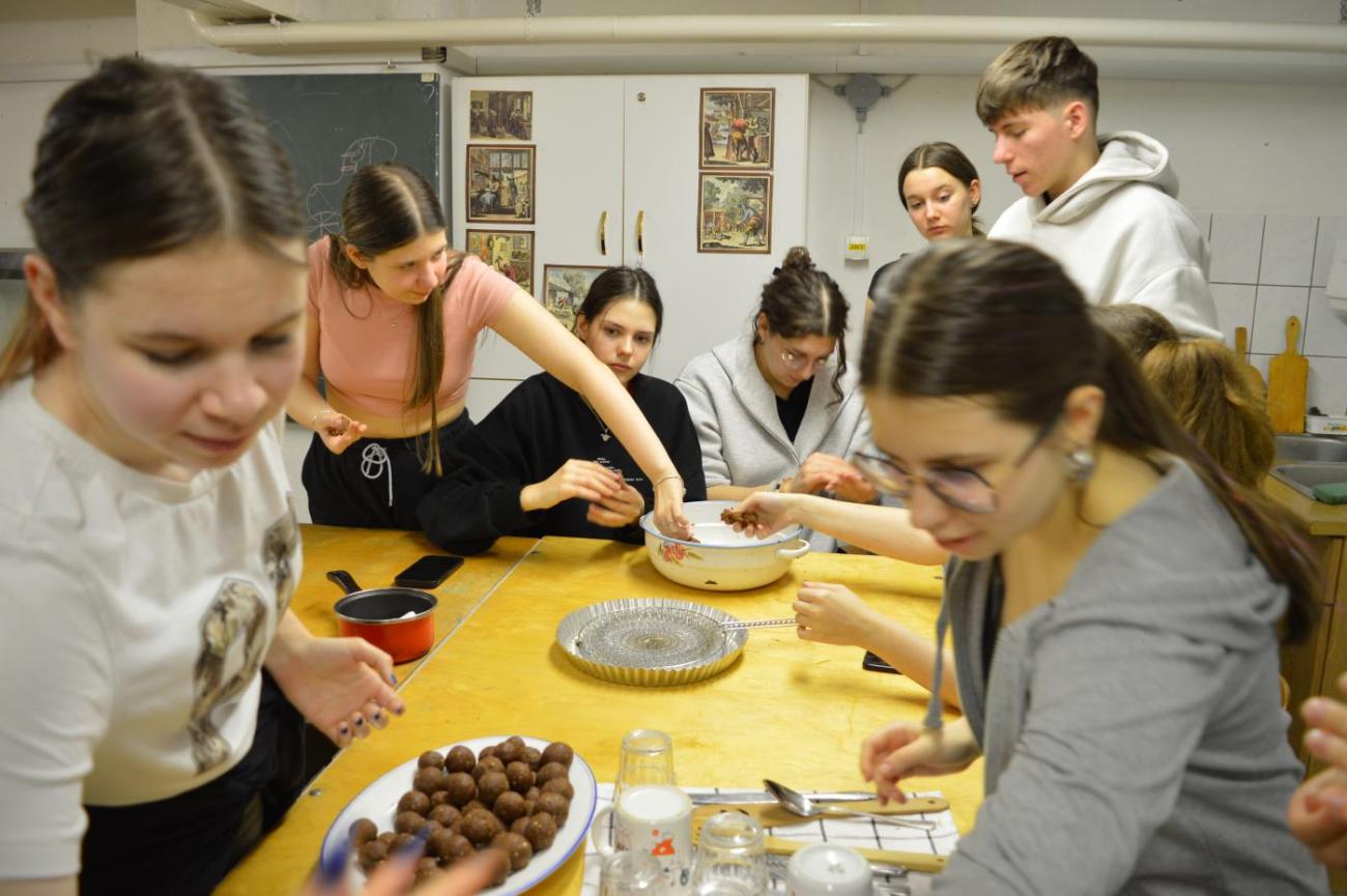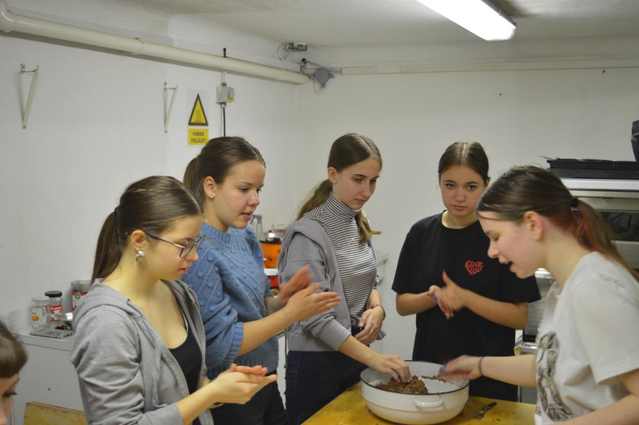 A szeretet ünnepéhez közeledve idén valami különlegessel készültünk: az iskola tanuló konyháját egy estére valódi édességműhellyé változtattuk. A cél az volt, hogy saját készítésű sütinyalókákkal (cake pop) lepjük meg barátainkat, de a folyamat
